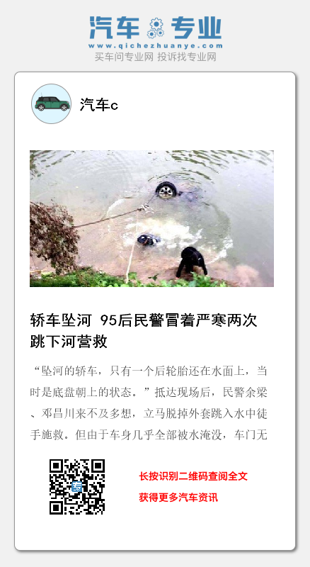 “坠河的轿车,只有一个后轮胎还在水面上,当时是底盘朝上的状态。”抵达现场后,民警余梁、邓昌川来不及多想,立马脱掉外套跳入水中徒手施救。但由于车身几乎全部被水淹没,车门无法打开。