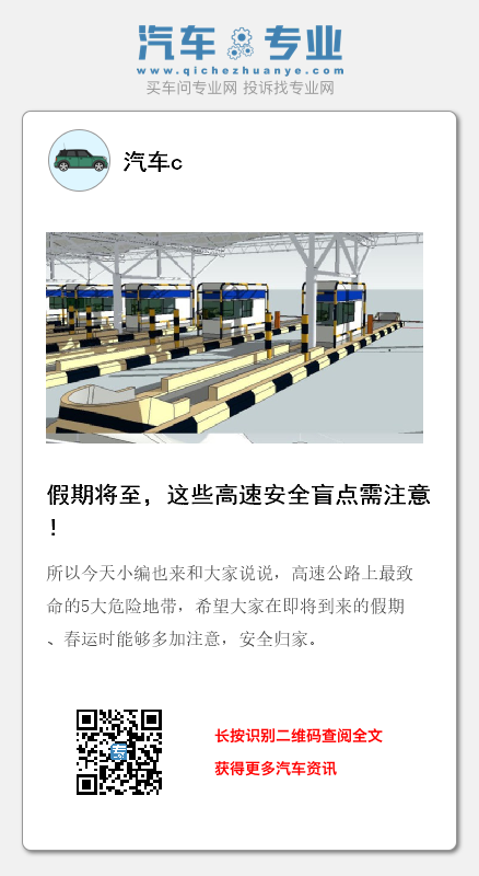 年关降至,又即将迎来新一年的春节。而说到春节,难免会想到那让人恐惧的春运,尤其对于众多驾驶者而言,春运就像是汽车“马拉松”,短则数小时,长则十数小时的驾驶行程,非常考验驾驶员的精神。但相对的,与春运息息相关的还有高速通勤。当车辆在高速公路行驶时,如果出现失误操作,分分钟就是危及生命的车祸。所以今天小编也来和大家说说,高速公路上最致命的5大危险地带,希望大家在即将到来的假期、春运时能够多加注意,安全归家。