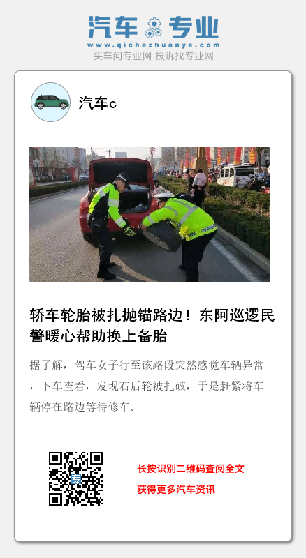 12月28日上午9时10分左右,东阿交警大队铁骑队民警杨杰、刘明、赵一龙巡逻至府前街振华超市附近时,发现路边停靠着一辆红色小轿车存在较大交通安全隐患,于是停车了解情况。据了解,驾车女子行至该路段突然感觉车辆异常,下车查看,发现右后轮被扎破,于是赶紧将车辆停在路边等待修车。