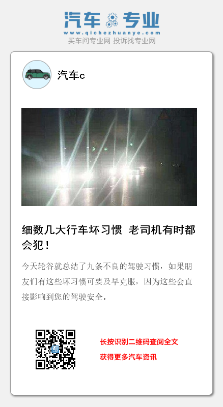 正对迎面而来的开着远光灯的车辆,那两道刺目的白光会让人头晕目眩,在短短几秒内出现视觉的盲区,成为酿成交通事故的隐患。很多车主自己讨厌这种行为,但其实,有时候车主自己也在发生这种行为。