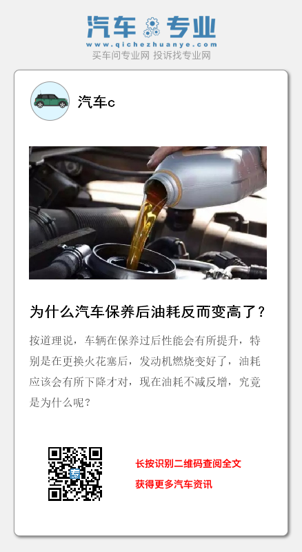 保养的时候维护、检测不规范,做完了之后确实有可能会出现以上提到的各种导致油耗增高的情况。车主朋友们给爱车进行保养时,一定要到专业的维修店,千万不要为了省几个钱,而让爱车消耗增高,得不偿失呀~