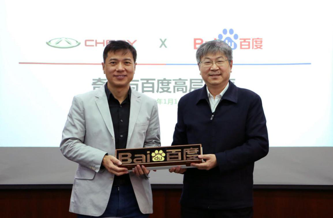 2020年1月14日,奇瑞集团与百度集团高层在北京百度大厦会晤。奇瑞控股集团有限公司董事长、党委书记尹同跃,百度创始人、董事长兼首席执行官李彦宏,以及双方公司负责智能驾驶、互联网营销业务的高层团队进行了交流,围绕深化和拓展智能驾驶等多领域合作达成重要共识。