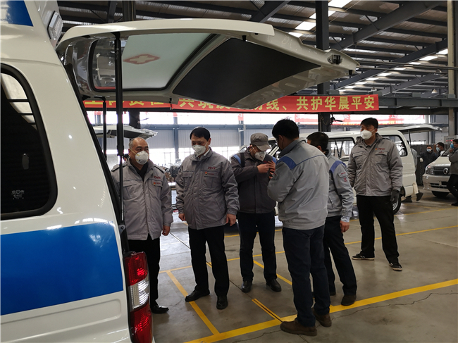 面临严峻形式,华晨集团党委副书记、董事、总裁刘鹏程主持召开了华晨负压式救护车应急生产协调会,集团有关分管领导、华晨雷诺金杯、申华专用车、沈北专用车、大连专用车相关负责人共同参加会议。会议明确了工信部首批负压式救护车生产任务。刘鹏程强调,各系统领导务必高度重视并做好生产计划,从基础车辆确认、负压系统预定及采购、相关专用改装件准备、生产人员组织、改装产品质量及性能保证、相关资金准备、物流发运等各个环节全面保证生产任务。