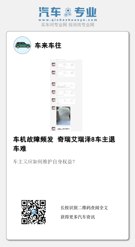 2月27日,杭州网汽车投诉热线0571-85053683接到了崔先生的投诉,其于2023年12月初购买的奇瑞艾瑞泽8车型车机系统频繁出现卡顿,严重影响车辆正常使用。