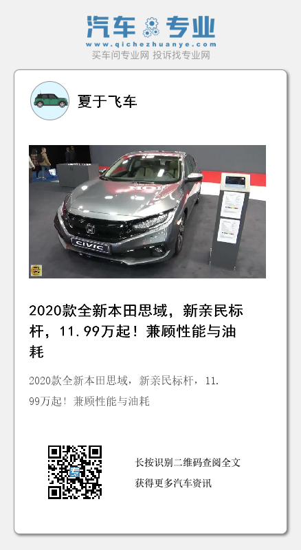 2020款全新本田思域,新亲民标杆,11.99万起!兼顾性能与油耗
