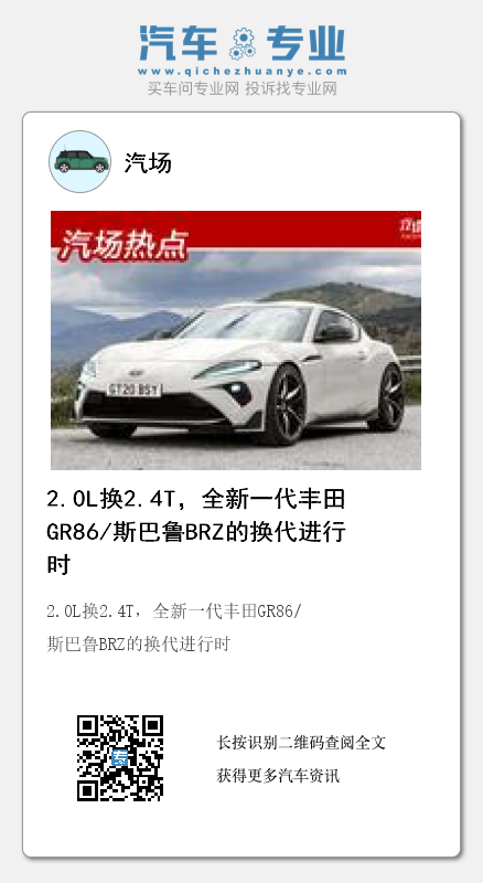 搭载至GR86和BRZ身上后,其发动机将会针对车型进行一定的调整,但基于更轻的整车质量和低重心,新车的动力性能将会更加强劲。动力性能将不再是全新一代GR86和BRZ的弊端,而是强有力的优势点。
