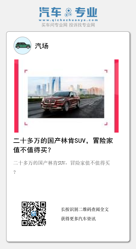 也有部分媒体曾经预测,未来林肯冒险家正式上市后的指导价格,要比现在的预售价格更低一些,起售价大约在23.5-24.5万元之间。