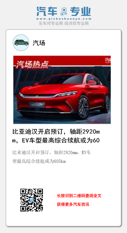 比亚迪汉开启预订,轴距2920mm,EV车型最高综合续航或为605km
