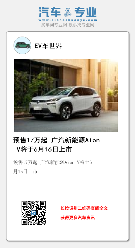 预售17万起 广汽新能源Aion V将于6月16日上市