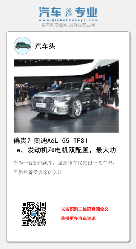 在我国奥迪的销量一直都很不错,在汽车市场占据了很重要的位置,每一年都会推出很多新车,2020年奥迪上线全新A6L 55 TFSI e,作为一台新能源车,虽然该车仅推出一款车型,但仍然备受大家的关注。那到底这台全新的奥迪新能源会有怎样的表现呢?现在我们来看看: