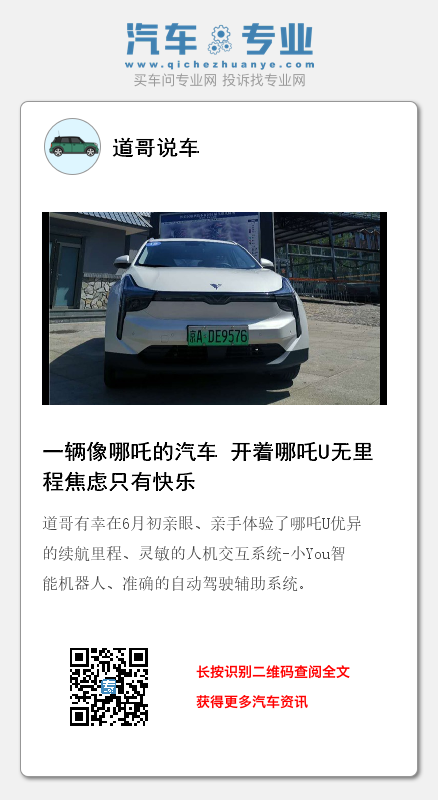 道哥有幸在6月初成为哪吒U山海经大型试驾体验活动第二站——北京站的试驾媒体,亲眼、亲手体验了哪吒U优异的续航里程、灵敏的人机交互系统-小You智能机器人、准确的自动驾驶辅助系统。