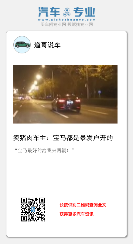 车主:首选奔驰,宝马都是暴发户买的,买奔驰一般都是自己做买卖,开车出去谈合作,显得成熟一点稳重一点。宝马太张扬了,太浮夸,车都很好,每个人的性格不一样。成熟稳重的一般都选择奔驰跟奥迪。一般暴发户一下子拆迁,拆个几千万:“宝马最好的给我来两辆!”