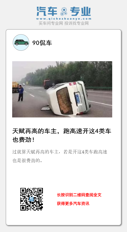 高手开车,各种出其不意的顶尖操作,不仅看着潇洒,感觉刺激,还给人以安全感。安全是开车的基础,要照顾乘车人的感受,要温柔体贴,动作不能过猛,车踩油门要轻,踩刹车要早,车子能行驶平稳,乘客坐在车上就好比躺在家里沙发上一样,仿佛进了安全港湾。若是单纯追求刺激,去追求一些过猛的操作,算不上高手,不过就算天赋再高的车主,若是开这4类车跑高速也是很费劲的。