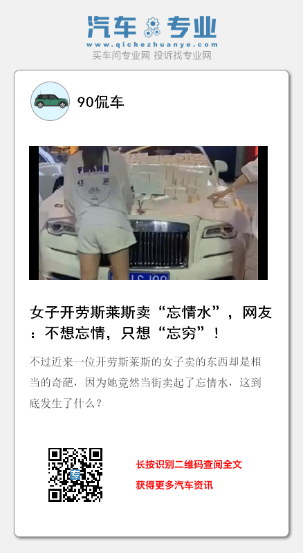 自从豪车摆地摊成为了一种潮流之后,那些富二代们仿佛是打了鸡血一般,再也不去唱歌蹦迪了,而是每天准时的蹲守在各大夜市,车上卖的小玩意儿更是一应俱全,虽然每晚连油钱都赚不到,但是他们却乐在其中。不过近来一位开劳斯莱斯的女子卖的东西却是相当的奇葩,因为她竟然当街卖起了忘情水,这到底发生了什么?接下来跟小编一起了解一下。