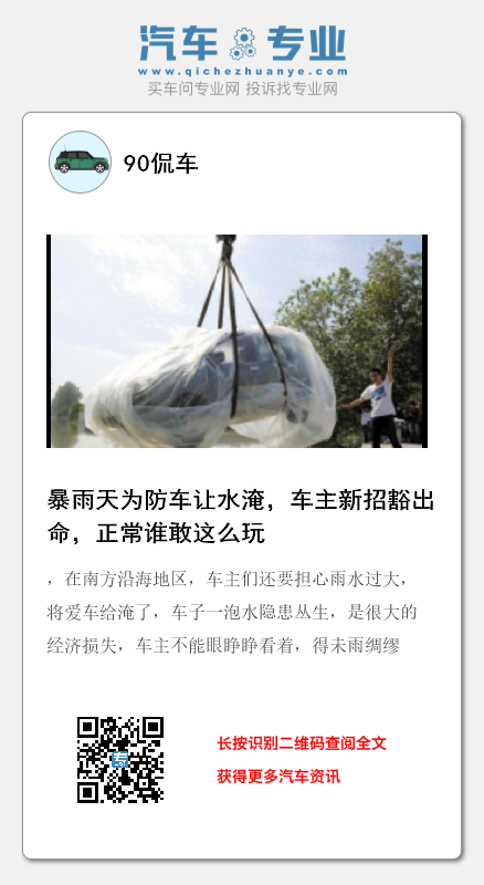 夏天是激情浪漫的季节,每每动笔写文章都感觉才思泉涌,好比滔滔江水,又如黄河泛滥。说到这里,夏天似乎也正是发大水的季节,如今台风又开始肆虐,下面雨水更多,在南方沿海地区,车主们还要担心雨水过大,将爱车给淹了,车子一泡水隐患丛生,是很大的经济损失,车主不能眼睁睁看着,得未雨绸缪,提前做好防范,三天两头盯着天气预报。