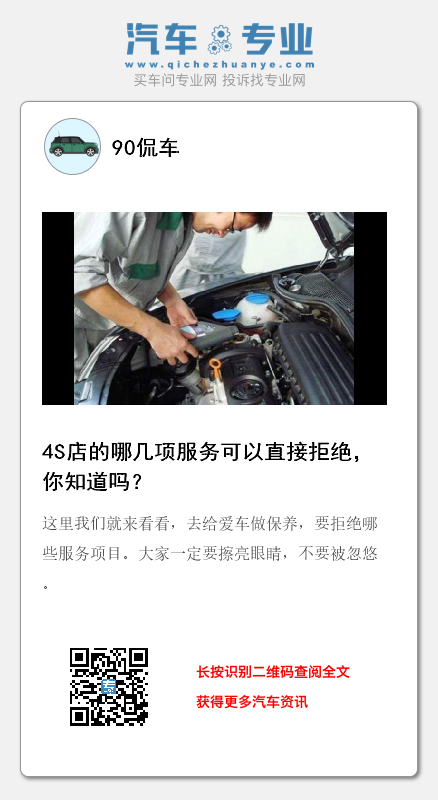 总结来说的话,我们的爱车进行保养是应该的,但是不能保养过度。上面说到的四个服务项目,能不在店里做就不在店里做,不然的话就只能是浪费钱,对车子也没有什么好处。一般来说,大家在4S店买车的时候,会得到4S店赠送的保养次数。大家能在4S店做保养就在4S店做保养,不要到外面的店里做。毕竟4S店还是有保障的,能够给车子比较专业的呵护。如果车子已经买到手两三年了,大家也对这些事情有了更多的经验,那么可以选择不到4S店做保养。