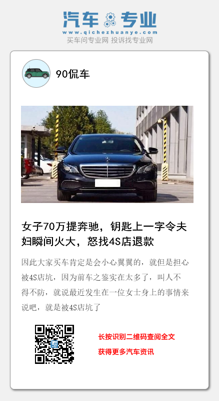 刘女士是一个生意人,生意人那肯定是离不开车的嘛,因为现在生意做的大一些,那面子肯定是需要提升一下的,最直接那就是车肯定需要换高档一点的了,出去谈生意也可以让别人觉得你实力不错,为生意的谈成加分,所以刘女士就打算买一款奔驰,去4S店挑了一款颜值非常高的奔驰,试驾后觉得非常不错,所以就花了70来万全款买下了,满心欢喜的开回家去了。